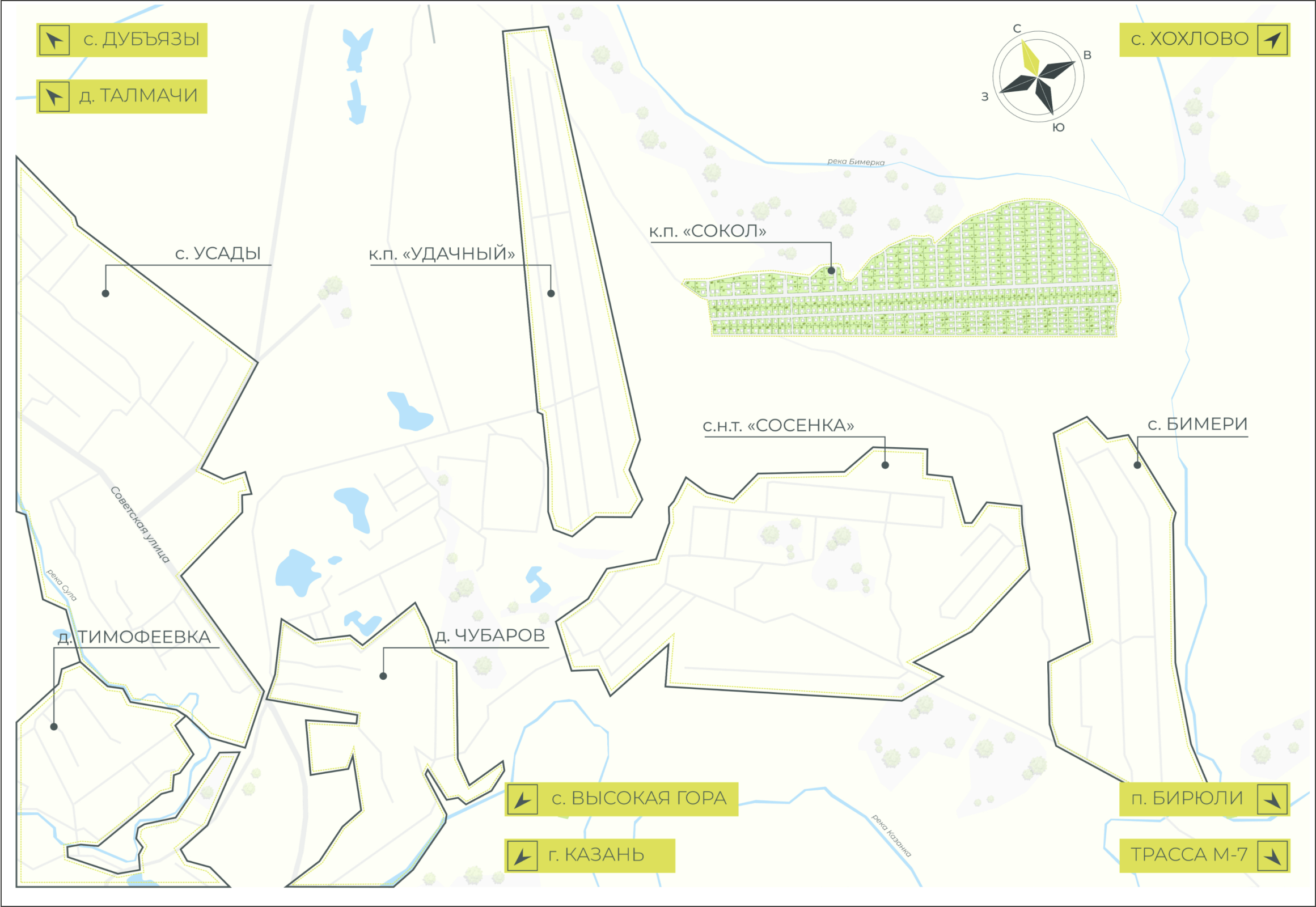 Коттеджный посёлок «Сокол» возводится в Высокогорском районе недалеко от Казани. Он разделён на 236 участков, треть из которых уже продана. Вы можете купить земельный участок в посёлке для строительства дома.
